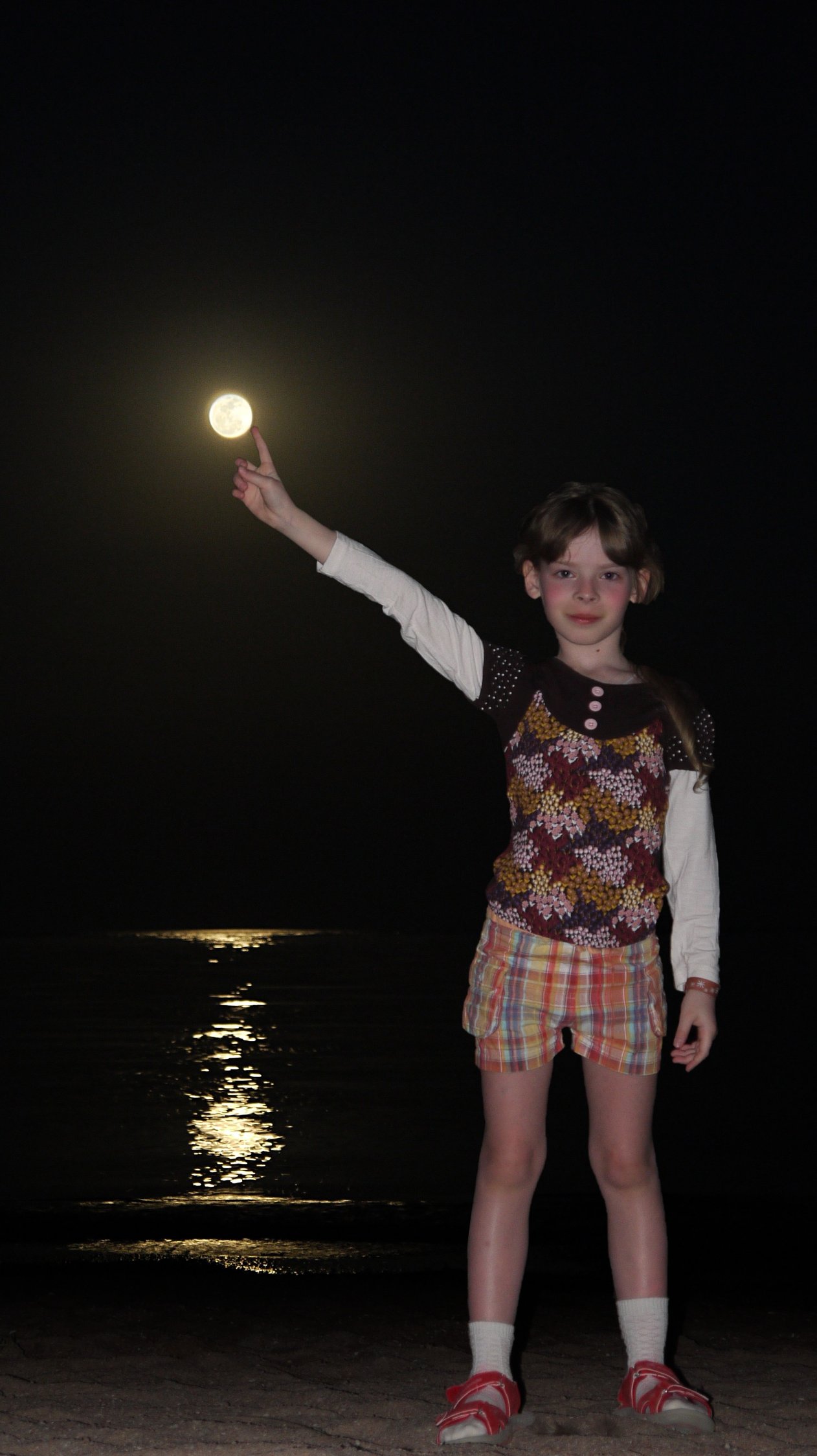 Первый день была обалденная луна. Заметил её от входа в отель, но пока шли до моря она уже и взошла. Светит очень ярко, снять нормально невозможно.