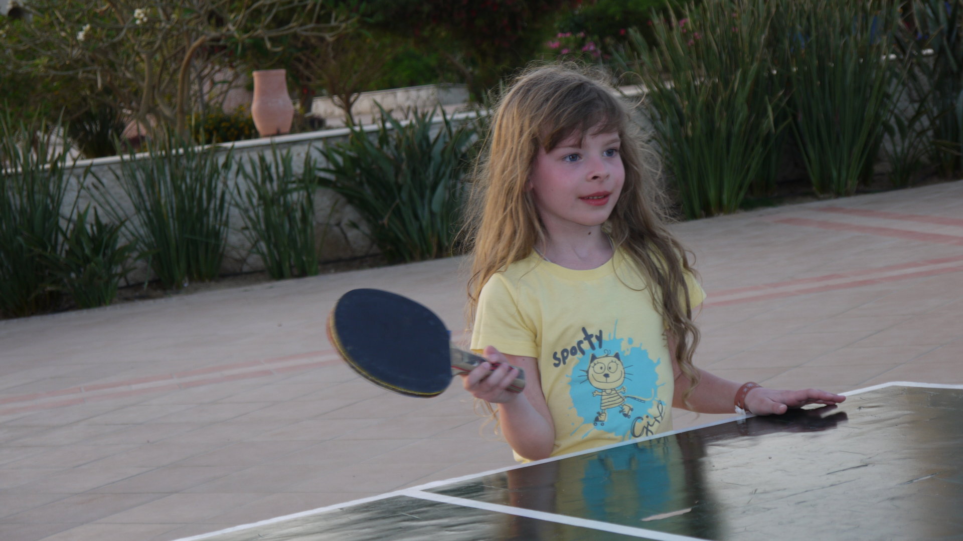 Играла в настольный теннис, но получается даже хуже чем плавать. Но, видимо, сам процесс удара по мячику доставлял удовольствие. Столы были почти всегда свободны играй не хочу.