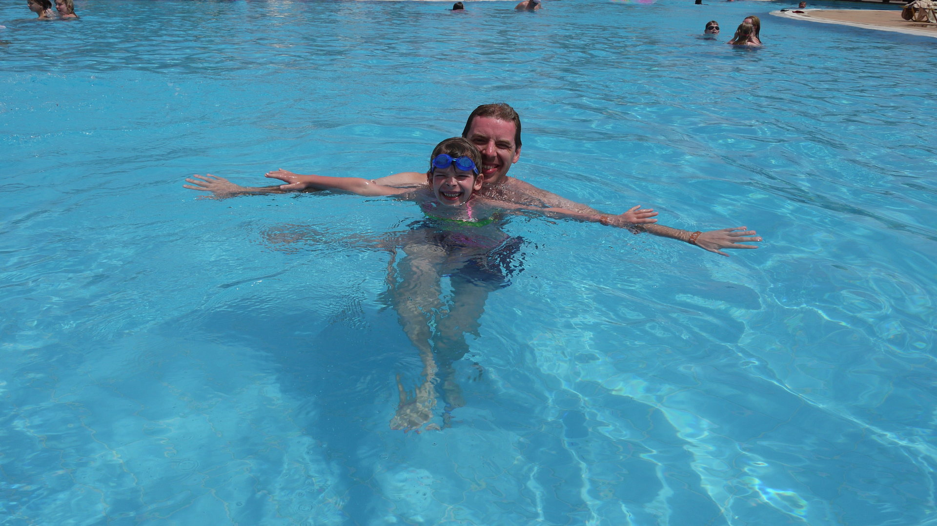 В конце ребенок освоился в бассейне (который ей глубоко с головкой) и даже почти научился плавать брасом. А в начале как топор (это не смотря на не очень регулярные, но все же, занятия в бассейне), но это её не останавливало без страха и упрека лезла в воду. Подружка, что характерно, в воде как рыба.